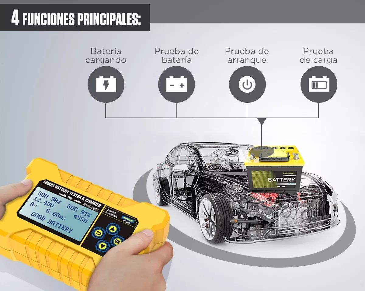 • Prueba de Arranque y Carga: Permite evaluar el rendimiento del motor de arranque y verificar si el alternador está enviando el voltaje correcto al sistema.