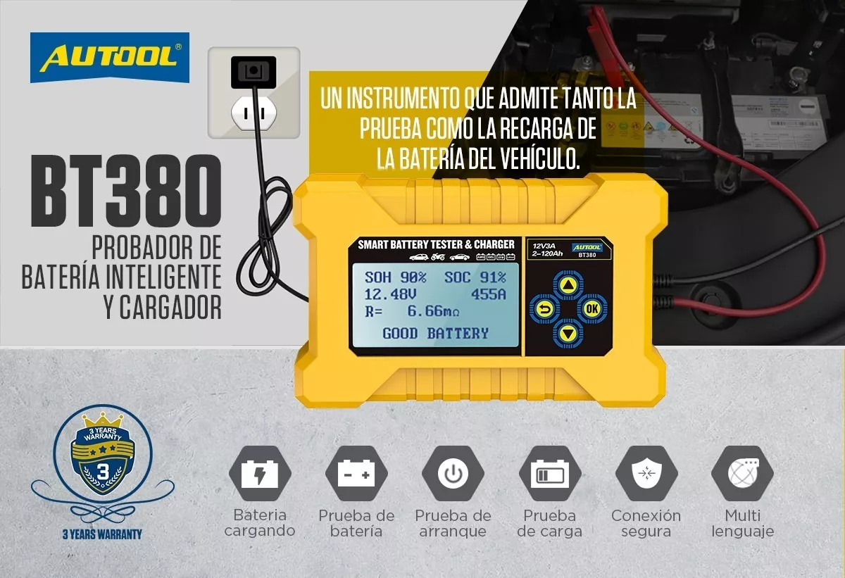 Autool BT380: Probador y Cargador Inteligente de Baterías 12V